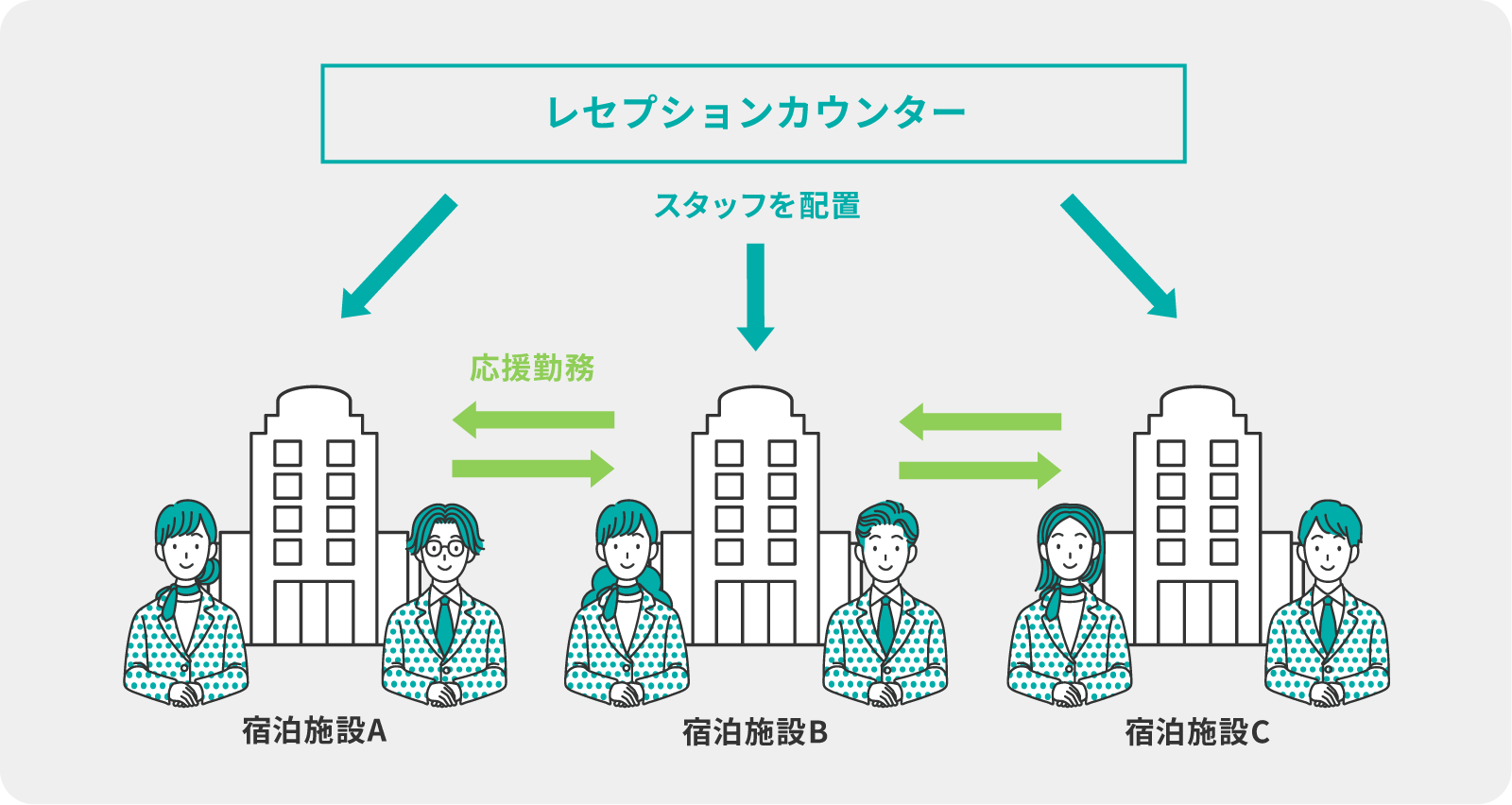 - スタッフは必要に応じて宿泊施設間を応援勤務